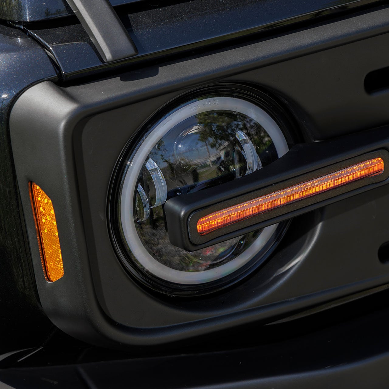 このセットには、グリルとエンブレム、ヘッドライトとポジションウインカーランプ、コーナーマーカーと、各種固定用のステー、バンパーが付属します。ヘッドライトはイカリング付き、ポジションウインカーランプはホワイトとアンバーの2色発光仕様です。