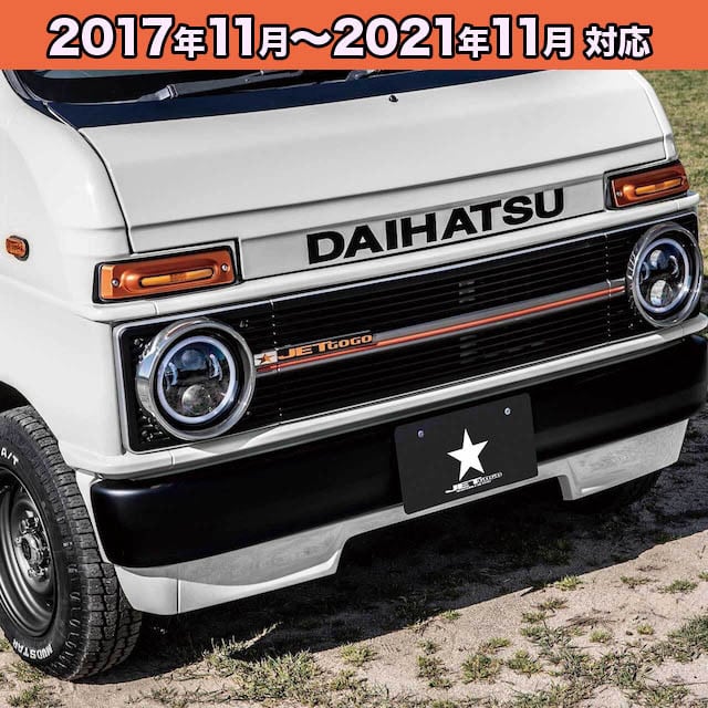 ダイハツのハイゼットカーゴを80年代風の丸目顔にするには、このJET GOGO製【フロントフェイス基本キット】の装着が必要です。
